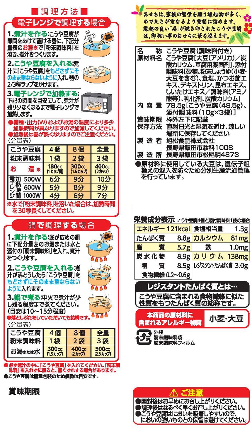 ●内容量79.5g[こうや豆腐(49.5g)、添付調味料(10g×3袋)]