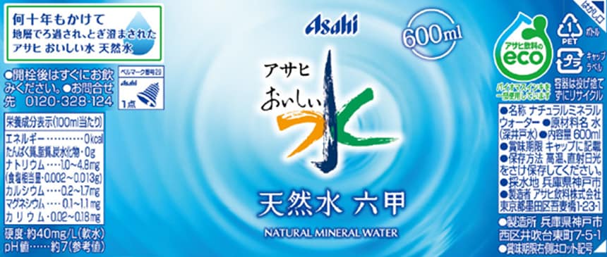 - アサヒ おいしい水 天然水 六甲 PET 600ml