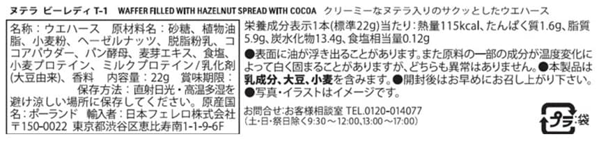 [40本]ヌテラ ビーレディ T-1 22g | かわいいフランスパンの形をしたサクサクのウエハースの中にヌテラがぎっしり入っています。
