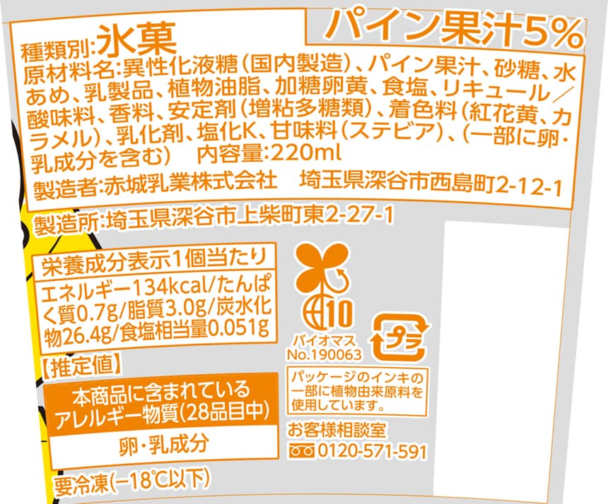 ※アイスクリーム類は、-18度以下での冷凍保存の状態では、品質の劣化が極めて小さい食品ということで、賞味期限の設定がされておりません。