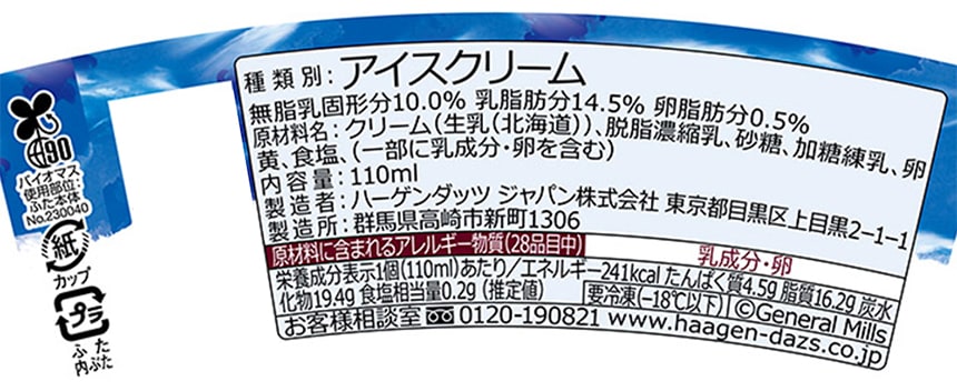 ※アイスクリーム類は、-18度以下での冷凍保存の状態では、品質の劣化が極めて小さい食品ということで、賞味期限の設定がされておりません。