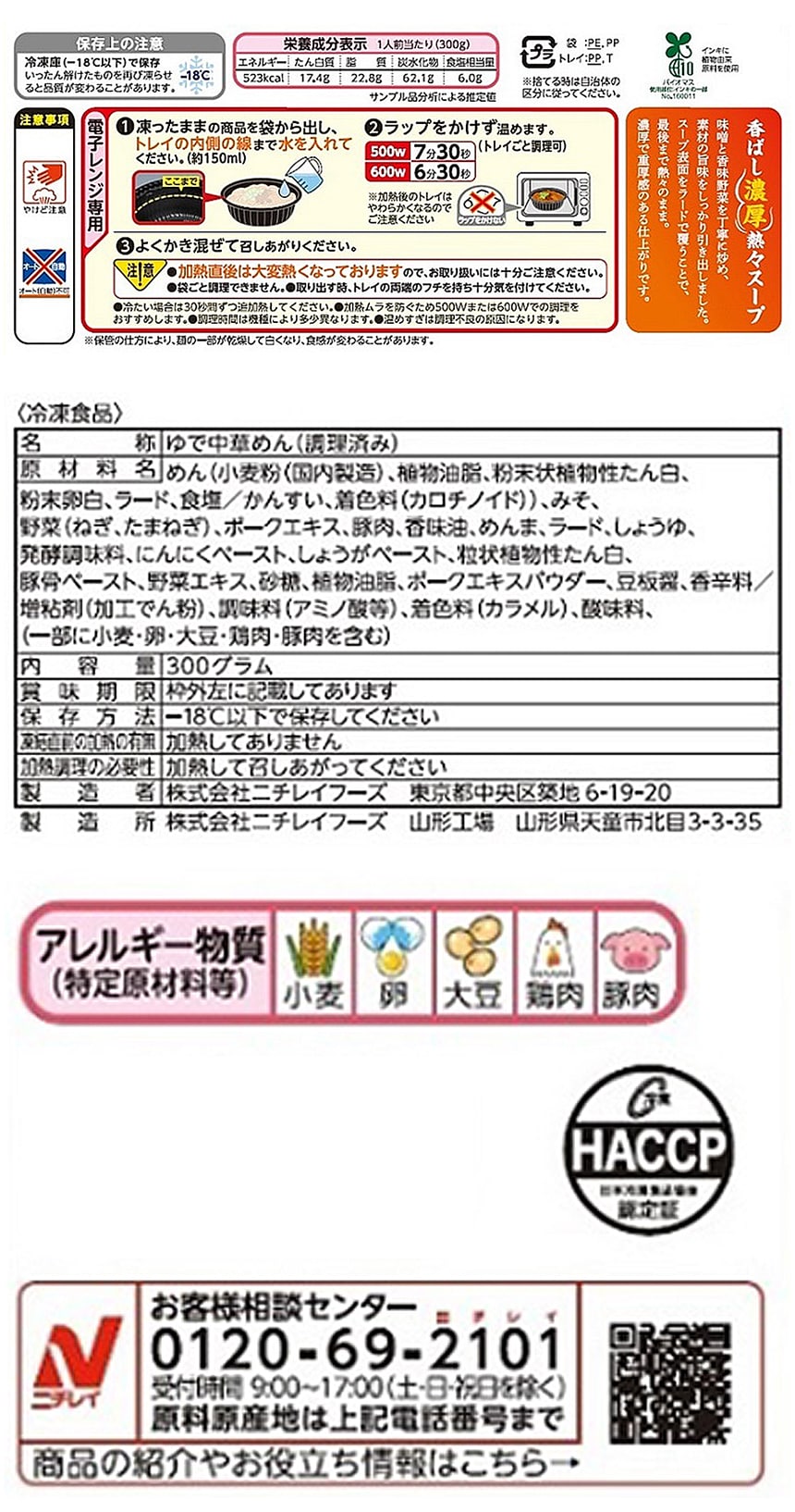 - [冷凍]ニチレイフーズ 香ばし炒めの濃厚味噌ラーメン 1人前(300g)×12個