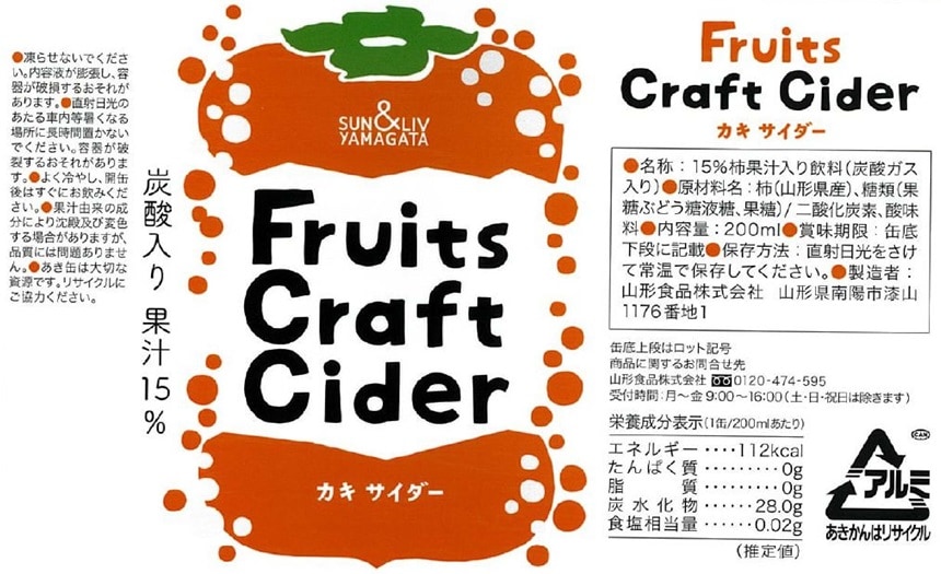 山形県庄内産の庄内柿果汁を15%使用した爽やかな飲み口の炭酸飲料。
