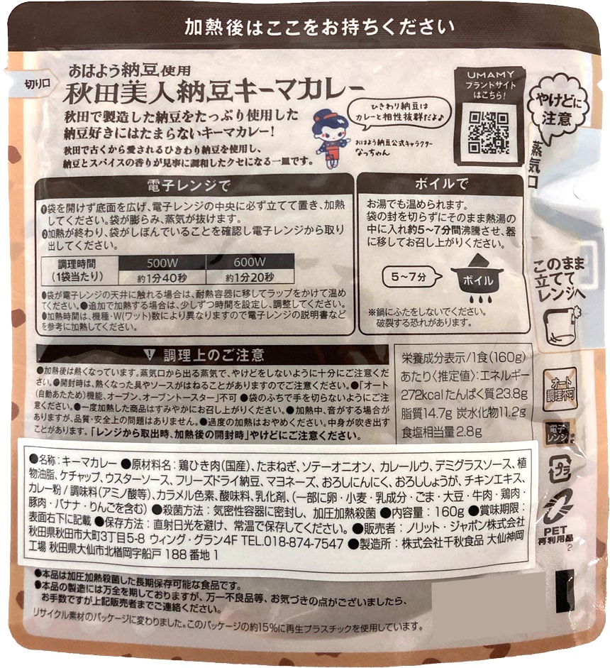 - 秋田美人納豆 キーマカレー 160g