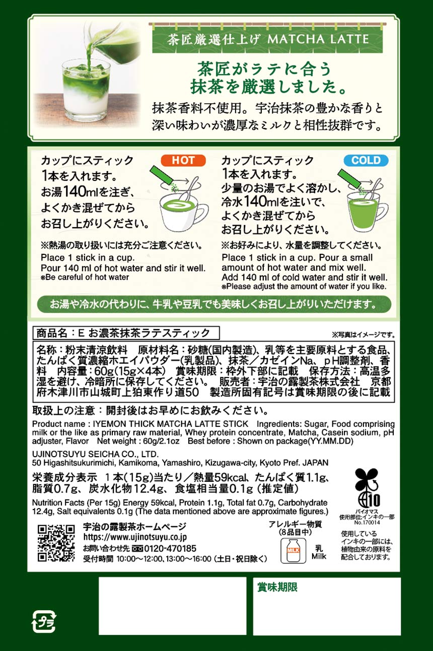 [計48本]宇治の露製茶 伊右衛門 お濃茶 抹茶ラテ スティック 60g(15g×4本)×12個 | 福寿園茶匠が選び抜いた抹茶で、濃厚なのにすっきりした抹茶ラテ