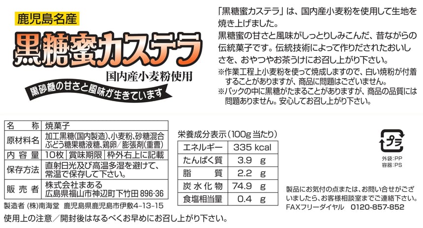「黒糖蜜カステラ」は、国内産小麦粉を使用して生地を焼き上げました。