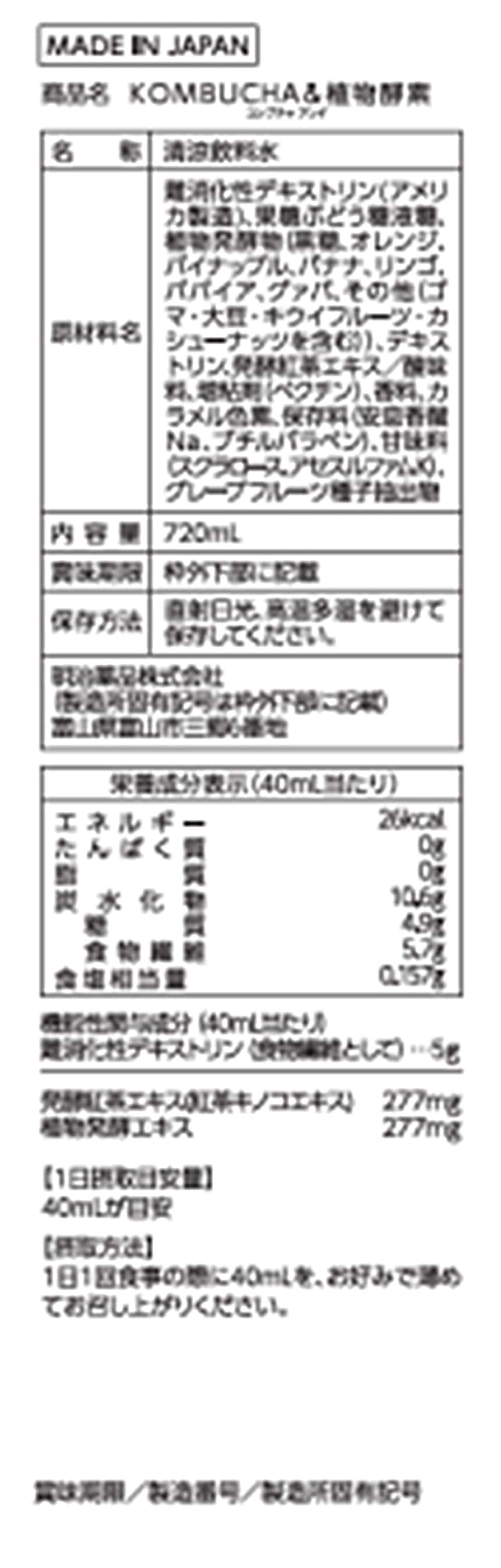 - 機能性表示食品KOMBUCHA&植物酵素 720ml