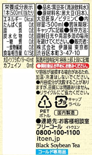 - おいしく大豆イソフラボン黒豆茶 PET 500ml