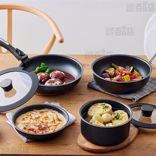 【ブラックメタリック】アイリスオーヤマ/ダイヤモンドコートパン 9点セット(ガス火対応)|重ねて省スペースで収納!汚れが落ちやすく、お手入れが簡単!調理後はハンドルを外し、お皿として食卓へ。
