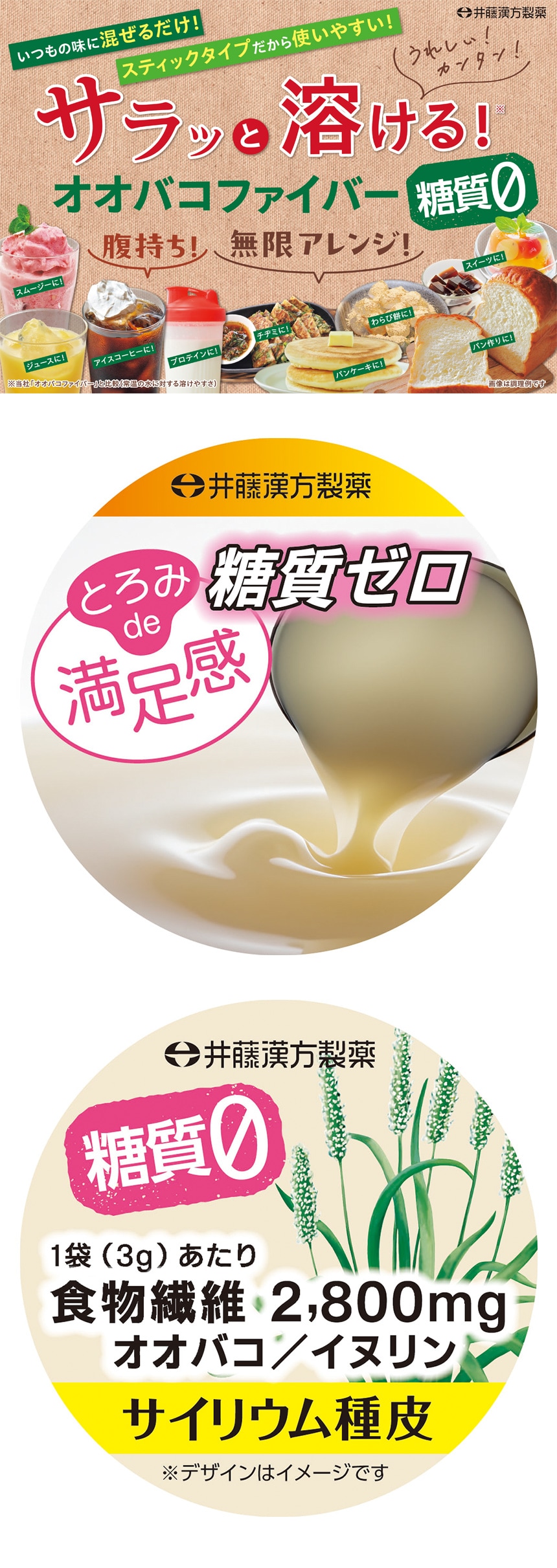 本品は水溶性食物繊維のイヌリンと組み合わせて顆粒にする事で、これまでのオオバコ商品とは異なる溶け具合を体感いただけると思います。