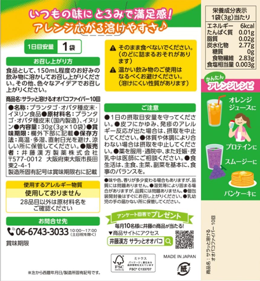 - サラッと溶けるオオバコファイバー 10袋入