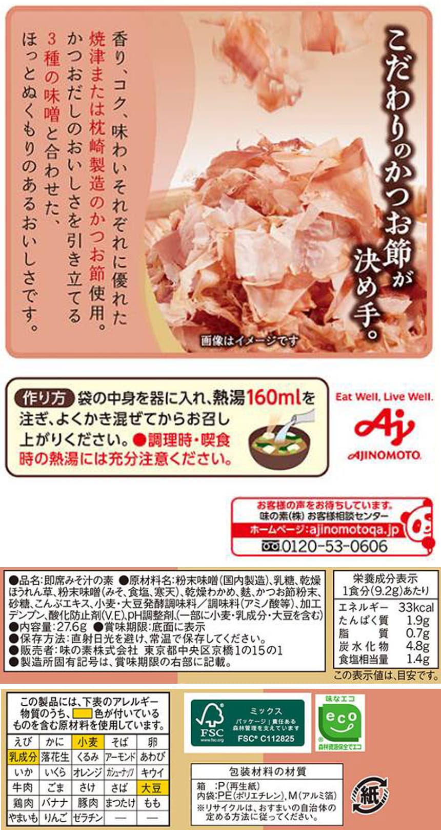 赤味噌の風味を引き立たせる、香りに優れた3種のかつお節を使用。