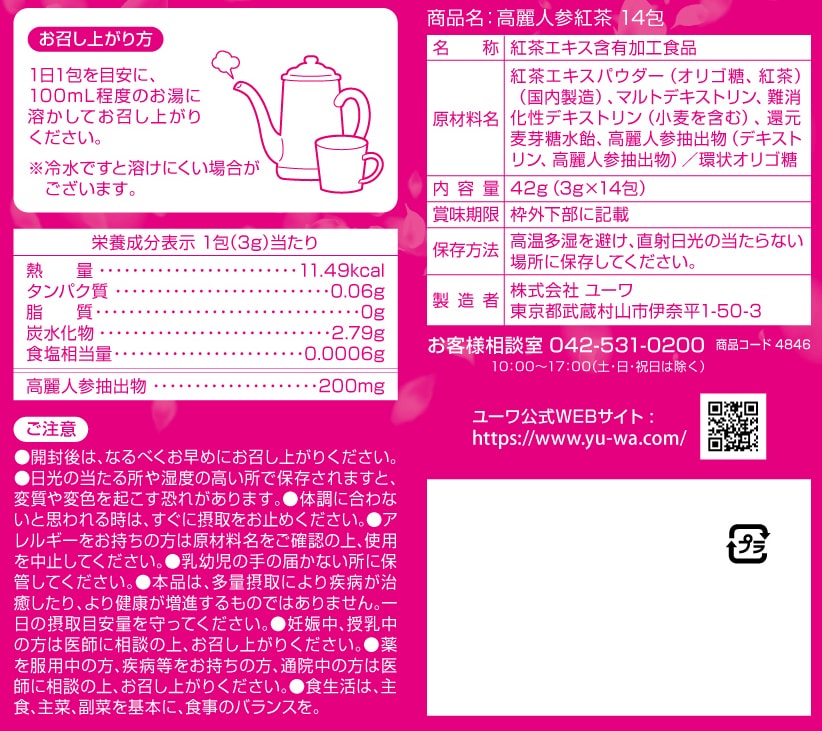 高麗人参抽出物を配合した飲みやすい紅茶です。