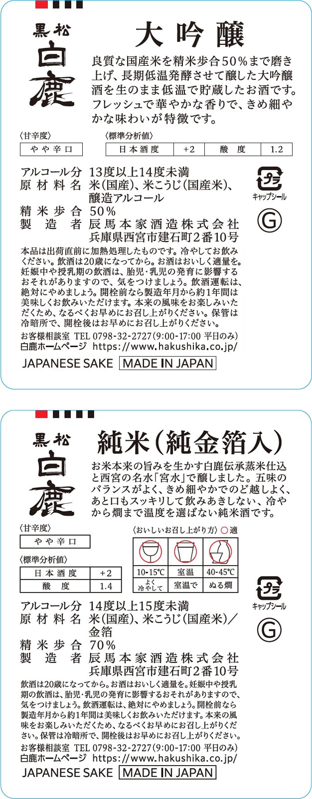- 黒松白鹿 大吟醸・純米金箔セット 1800ml×2本入