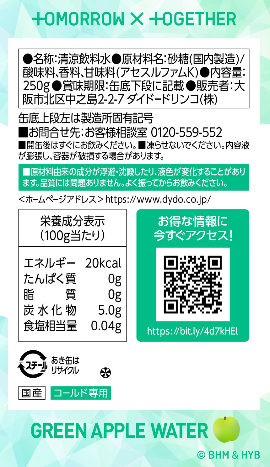 - ダイドー TOMORROW X TOGETHER (トゥモローバイトゥギャザー) グリーンアップルウォーター 250g(自販機デザイン)