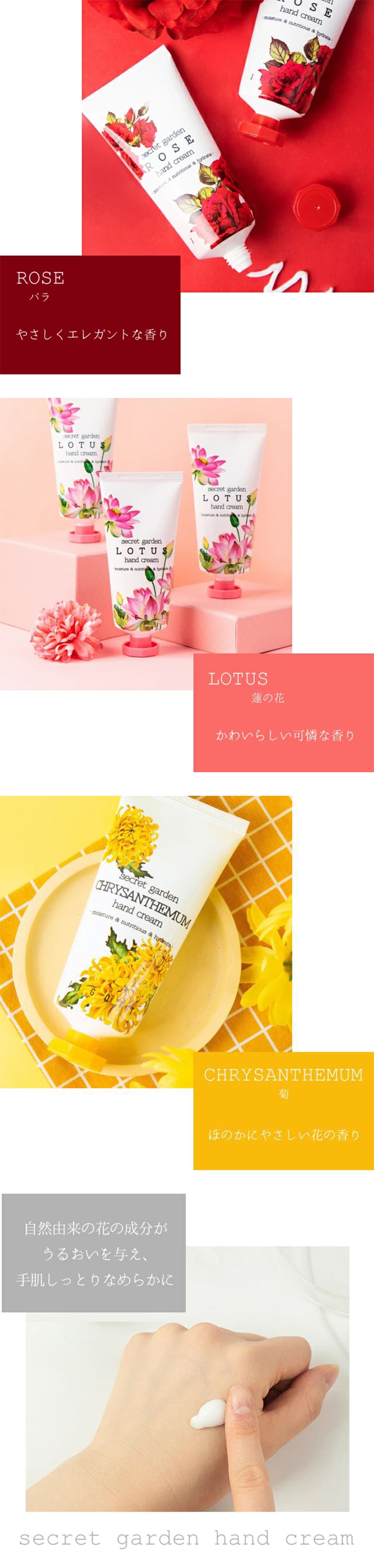 - シークレットガーデン ハンドクリーム 3種セット(ローズ / ロータス / マム)