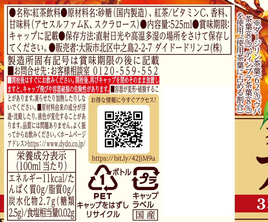 ※ ダージリン茶葉(62%)、ウバ茶葉(8%)、ディンブラ茶葉(8%)を使用。(使用茶葉に占める割合)