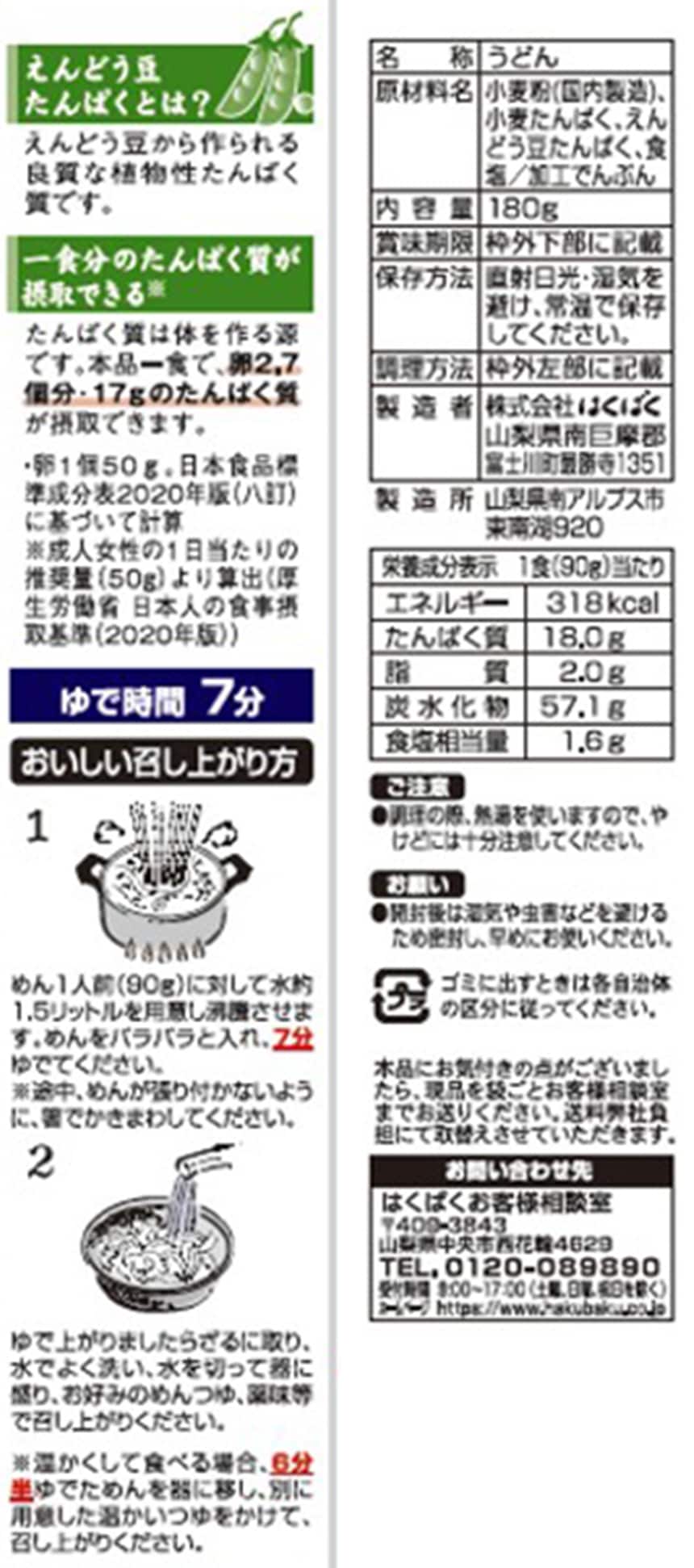 えんどう豆たんぱくを使用。一食分(乾麺90g)でたんぱく質17g(卵2.7個分)が摂取できます。