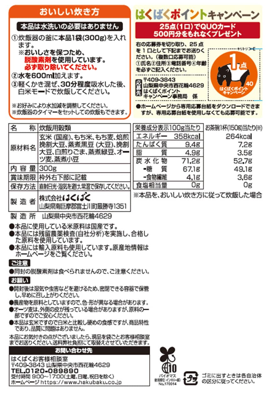 (1)普段の食事からたんぱく質が摂れる。(2)穀物+お豆の植物性たんぱく質。(3)不足しがちな食物繊維もあわせて摂れる。浸漬30分洗わす炊ける玄米2合用。