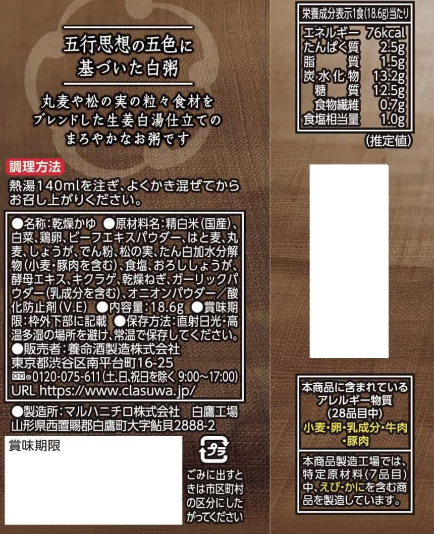 - 養命酒製造 五養粥 白 18.6g×10個