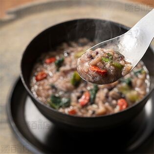 【商品の特徴】やみつきになる香味醤油が香る中華味のお粥です。あざやかなクコの実チンゲン菜が彩りを添えます。[1食当たり74kcal]