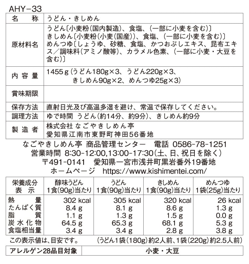 [3箱]なごやきしめん亭 めん詰合せ AHY-33 1455...4358円(1452.7円/箱)