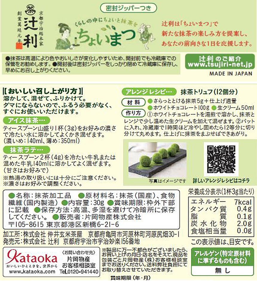 - 片岡物産 辻利 さらっととける抹茶(袋) 30g×3袋