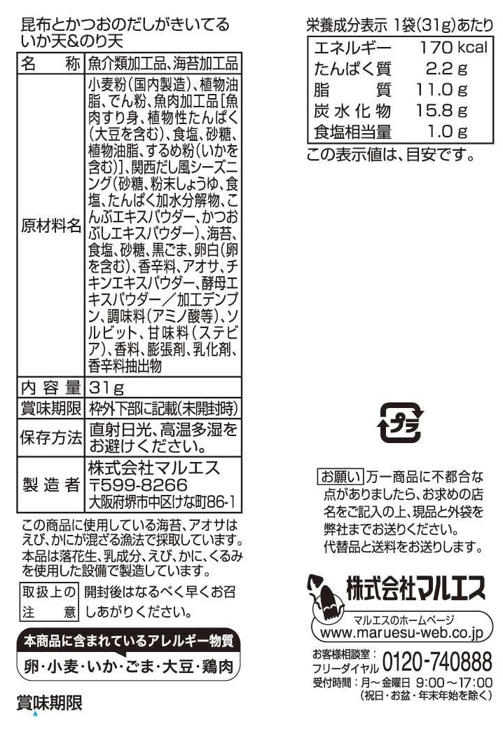 - 昆布とかつおのだしがきいてるいか天&のり天 31g