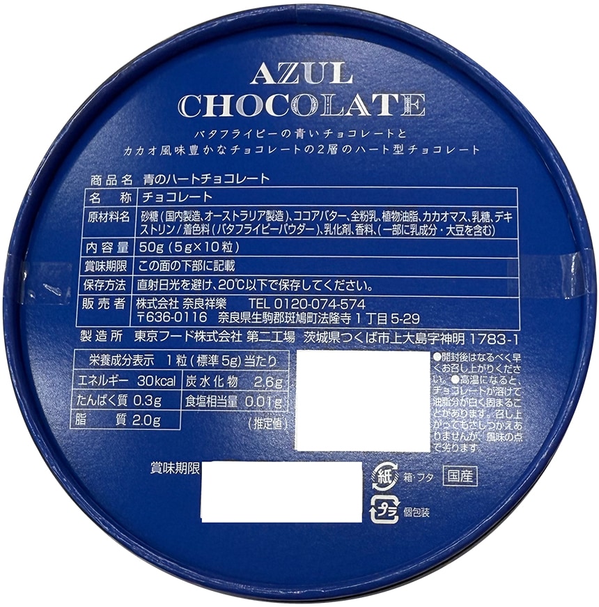 - 青のハートチョコレート AZUL CHOCOLATE 50g(5g×10粒)