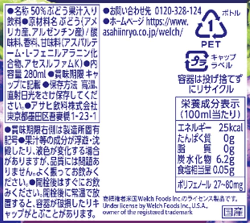 - Welch’sグレープ50 濃いぶどう PET 280ml