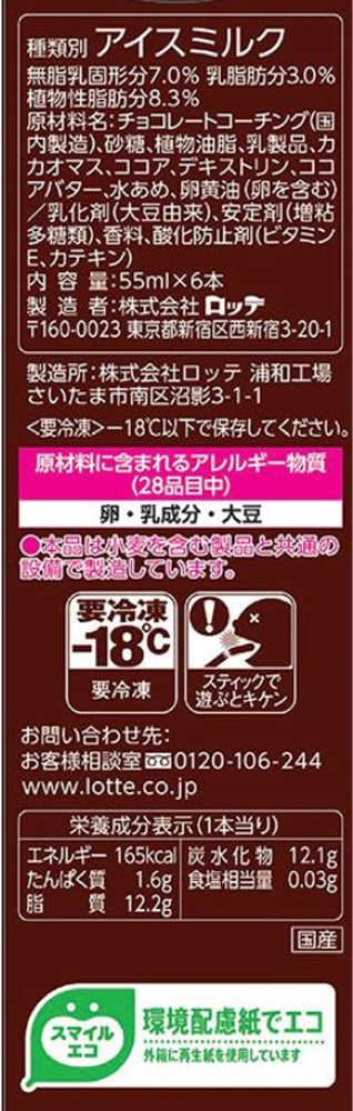 ※アイスクリーム類は、-18度以下での冷凍保存の状態では、品質の劣化が極めて小さい食品ということで、賞味期限の設定がされておりません。