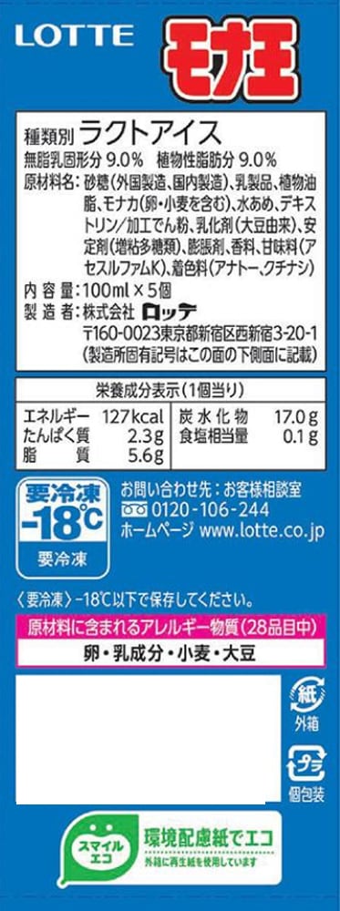 ※アイスクリーム類は、-18度以下での冷凍保存の状態では、品質の劣化が極めて小さい食品ということで、賞味期限の設定がされておりません。