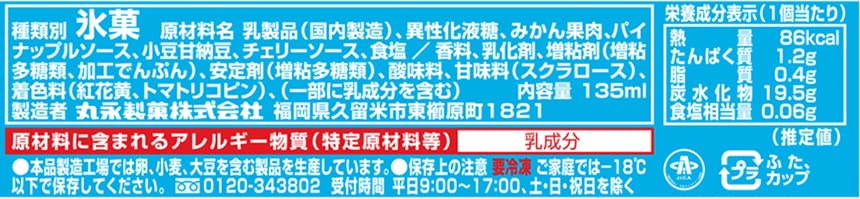 ※アイスクリーム類は、-18度以下での冷凍保存の状態では、品質の劣化が極めて小さい食品ということで、賞味期限の設定がされておりません。