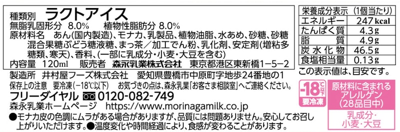※アイスクリーム類は、-18度以下での冷凍保存の状態では、品質の劣化が極めて小さい食品ということで、賞味期限の設定がされておりません。