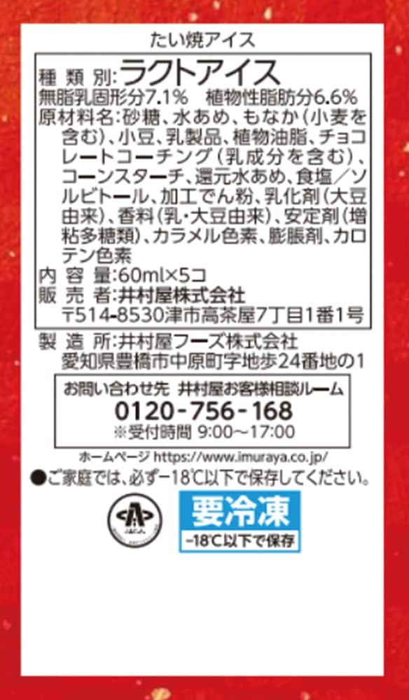 アレルギー表示:小麦、乳、大豆