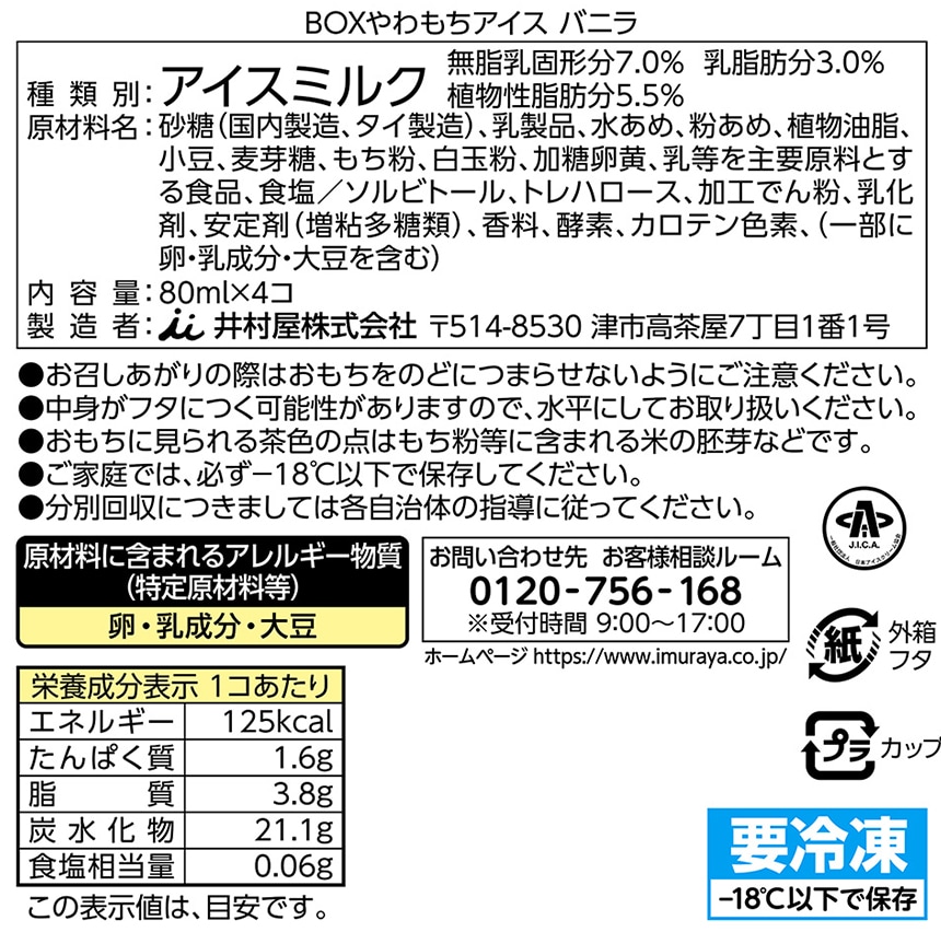 - [冷凍]井村屋 BOXやわもちアイス バニラ (80ml×4個)×9箱