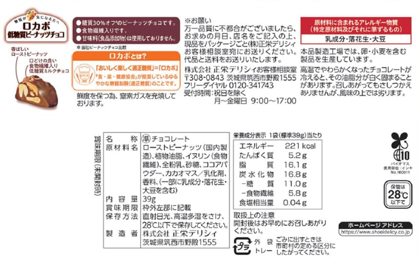 - ロカボ 低糖質ピーナッツチョコ 39g