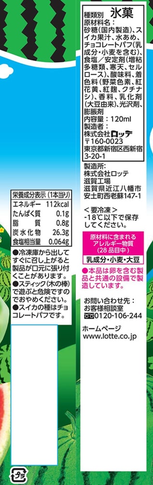 - [冷凍]ロッテ BIGスイカバー 120ml×12個