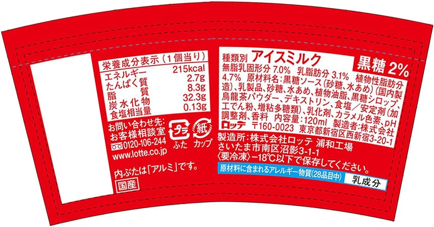 ※アイスクリーム類は、-18度以下での冷凍保存の状態では、品質の劣化が極めて小さい食品ということで、賞味期限の設定がされておりません。