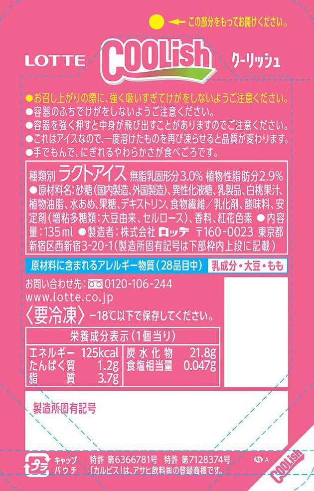 [冷凍]ロッテ クーリッシュ×カルピスⓇ白桃 135ml×24個 | 人気飲料の「カルピス」とコラボした甘酸っぱい美味しさが楽しめるクーリッシュ×カルピス白桃。
