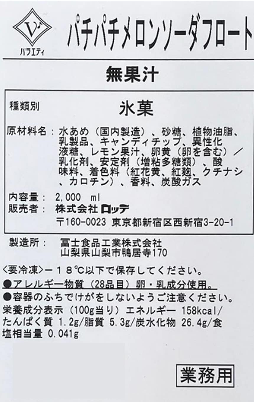 - [冷凍]ロッテ 業務用 バラエティ パチパチメロンソーダフロート 2000ml×2個
