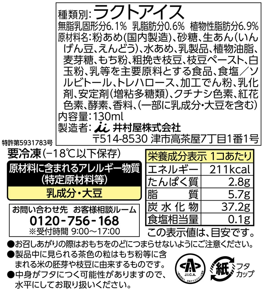 - [冷凍]井村屋 やわもちアイス ずんだもち味 130ml×8個