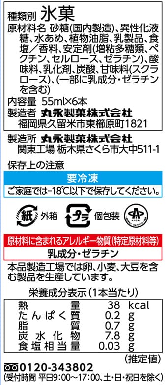 ※アイスクリーム類は、-18度以下での冷凍保存の状態では、品質の劣化が極めて小さい食品ということで、賞味期限の設定がされておりません。