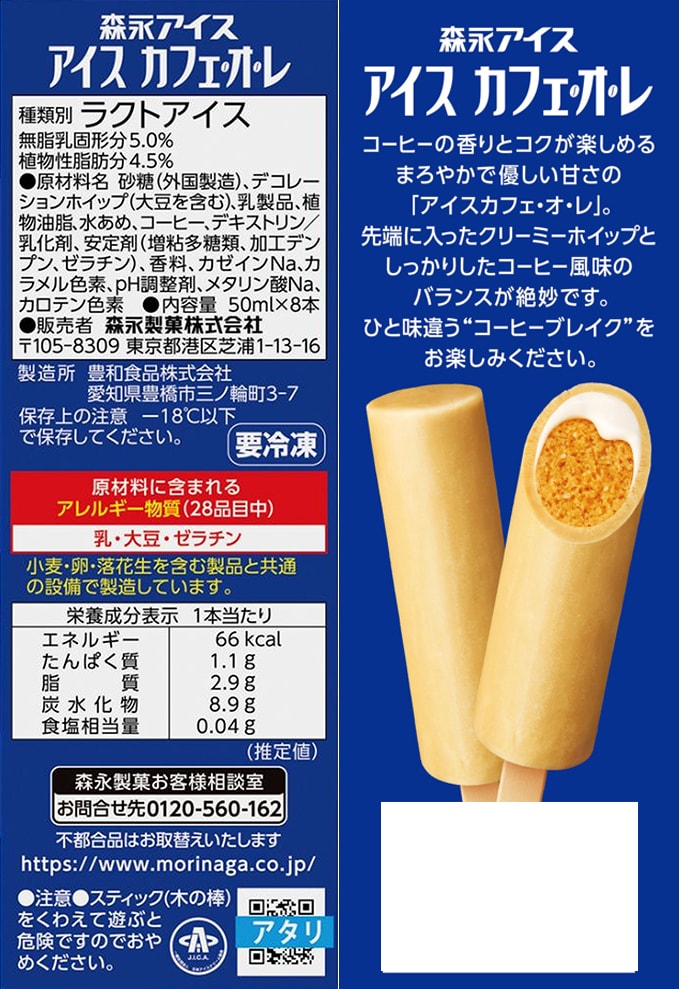 - [冷凍]森永製菓 アイスカフェ・オ・レ 8本入×3箱