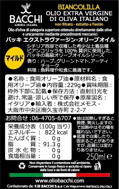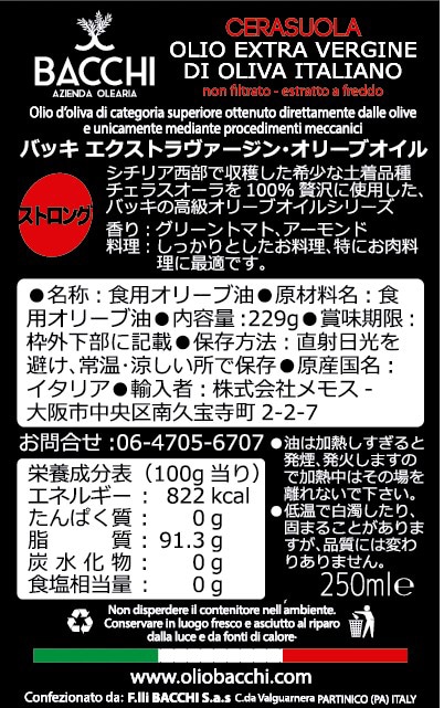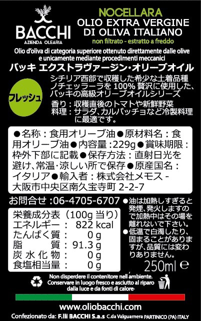 - ・バッキ ノチェッラーラ〈フレッシュ〉エクストラヴァージン オリーブオイル 229g×2本