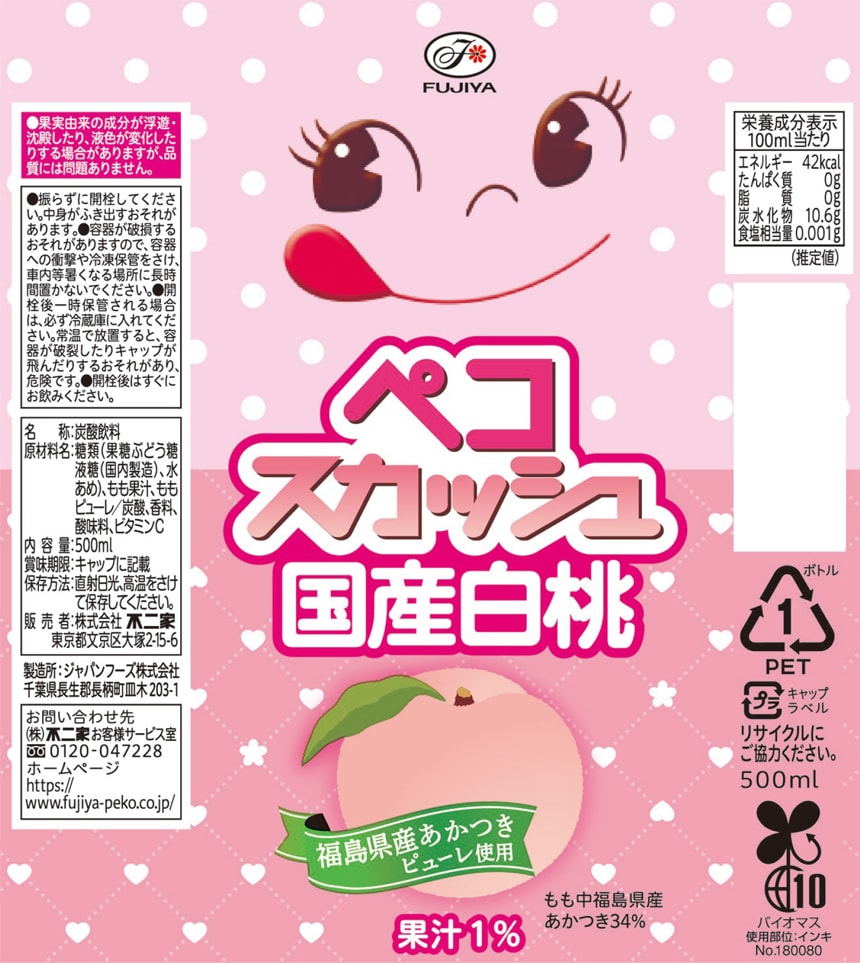 - 不二家 ペコスカッシュ 国産白桃 PET 500ml