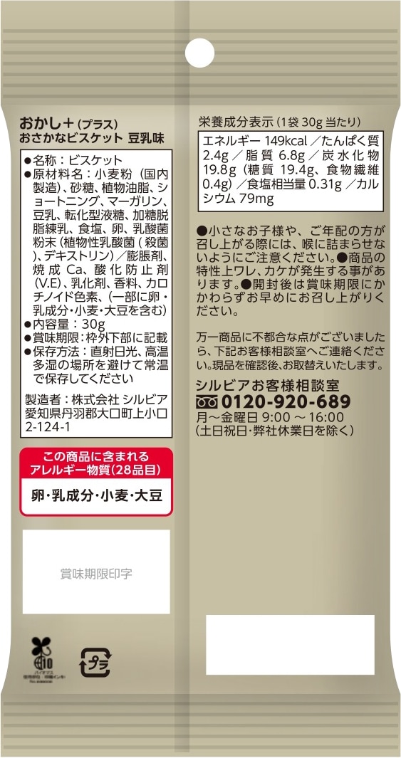 豆乳味の魚型ビスケットに乳酸菌とカルシウムを配合しています。