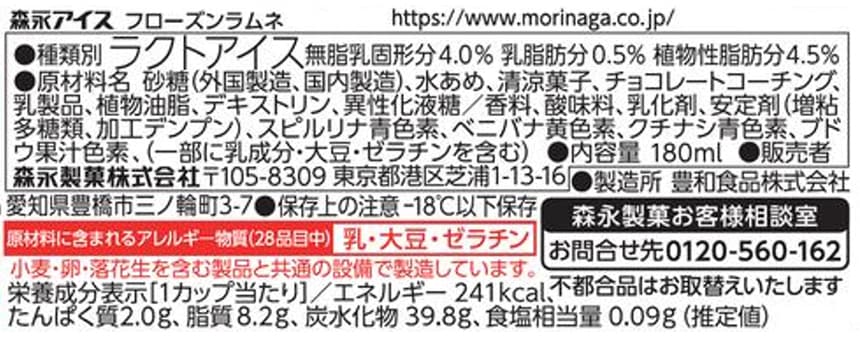※アイスクリーム類は、-18度以下での冷凍保存の状態では、品質の劣化が極めて小さい食品ということで、賞味期限の設定がされておりません。