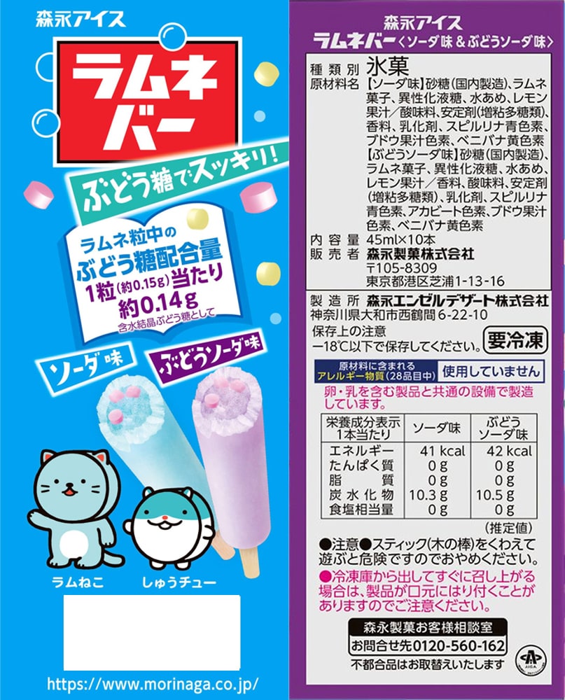 - [冷凍]森永製菓 ラムネバー ソーダ味&ぶどうソーダ味 (45ml×10本入)×2箱