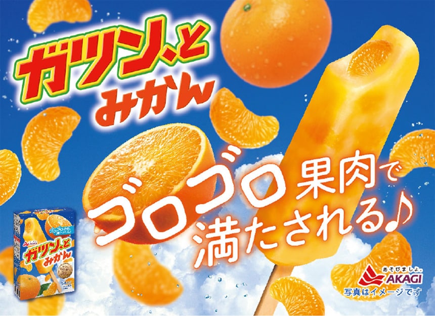 フルーティーなみかんアイスキャンディーにみかん果肉をガツン、と詰め込みました。
